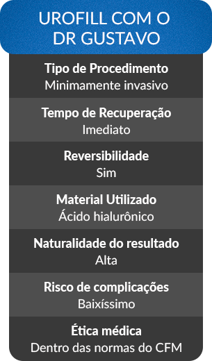 Sim — quando feito com responsabilidade médica, técnica moderna e materiais seguros. O Urofill é um dos procedimentos mais avançados da medicina estética masculina. Ele utiliza ácido hialurônico, uma substância já presente no nosso corpo, para promover aumento da circunferência peniana com naturalidade, reversibilidade e segurança. Tudo realizado em consultório, sem necessidade de cirurgia ou internação.